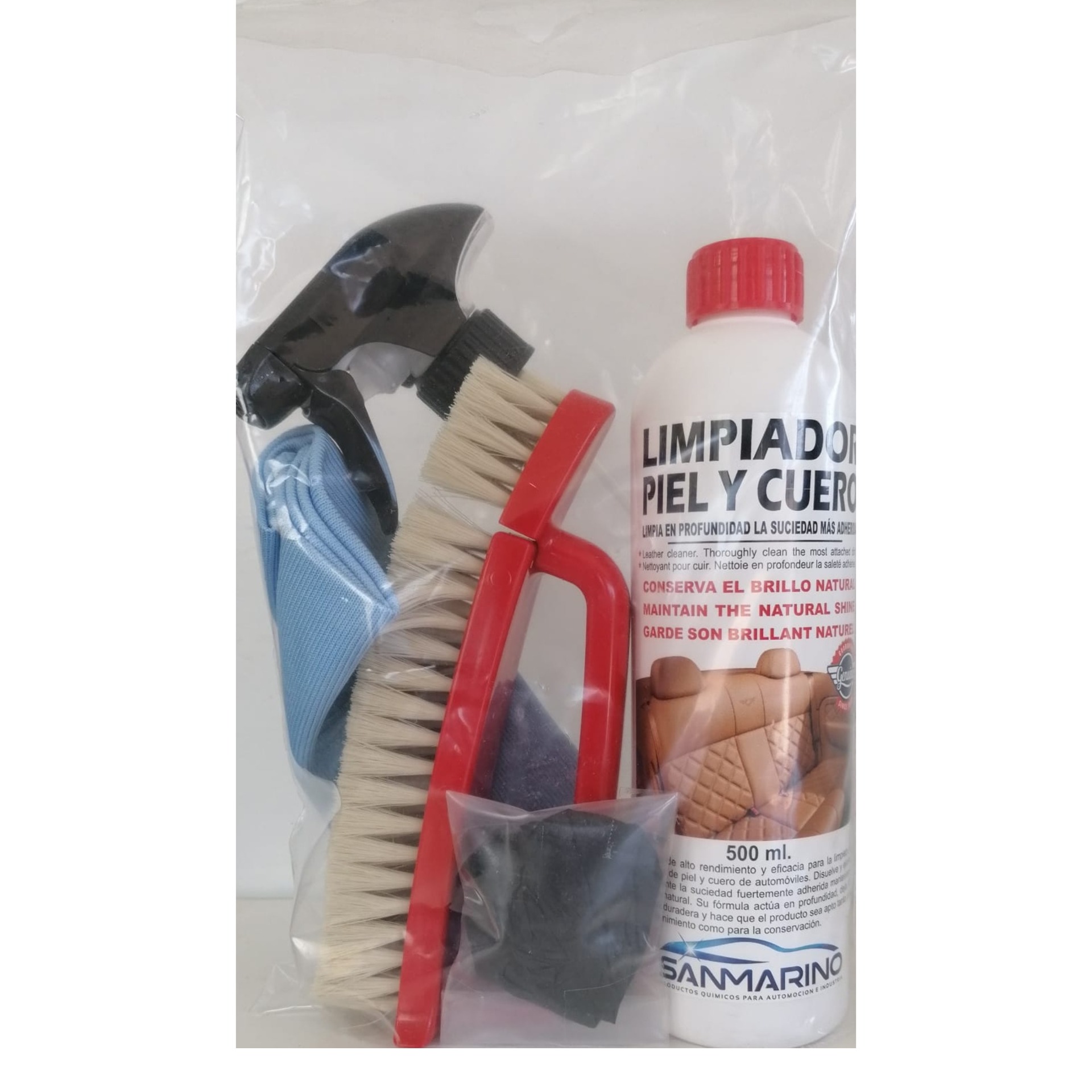 Producto de alto rendimiento y eficacia para la limpieza de tapicerías de piel y cuero de automóviles.